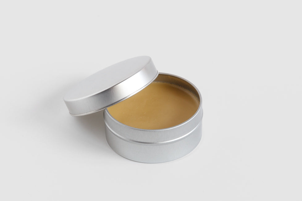 みつろうのワックスを木の素地に塗るってことを知ったのは20年程前だろうか。英国製の輸入品で、なんて高いんだと思いつつ必死に磨くと、ほんのりと甘い香りがするのが高尚なイメージで。へえ…..なんて調子で無垢材の家具とか材木とかにぐいぐい引込まれたのだ。あまり疑う事もなく20余年それを使っていたんだけど、お取引先の要望でトルエンフリーの品物を作る事になった。叔父が養蜂をやっているので可能性が濃くなって実現した訳だけど、そもそもはホームメイドでクリームのように調合して手肌に塗っていたからなのだった。家具のケア用品を作るとはイメージしたこともなかったけど。無垢の床材にもぬってみたら、へえ…..なんて調子だった(ライナスのおしっこもしみ込まない)。100%天然由来の成分で埼玉産の蜜蝋と椿油、白い花が好きなのでジャスミンの精油。たったこれだけのビーズワックスは革などに塗って保護するのにもよい。ぼくはブーツにも使っている。それにしてもタダシおじさん、ありがとう。収納袋付き。