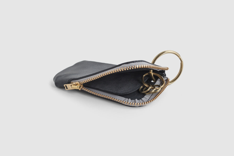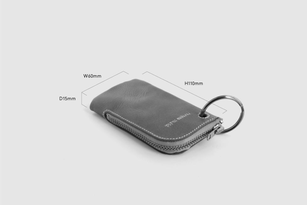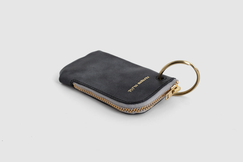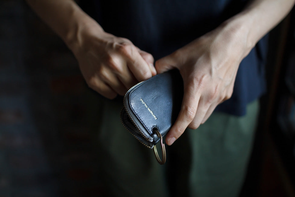 Leather Wallet “Brilleaux” と同じ設計思想に基づいて製作したキーケース。革を内側で縫い合わせる「袋縫い」にすることでマチができ、収納物を取り出し易い構造になっています。また適度な厚みは手にも馴染みやすく、ジッパーによって完全に閉じられるので鍵が飛び出す心配がありません。中には仕切りが付き鍵以外にもICカードや小銭などの収納が可能。オンラインショップでの限定販売。