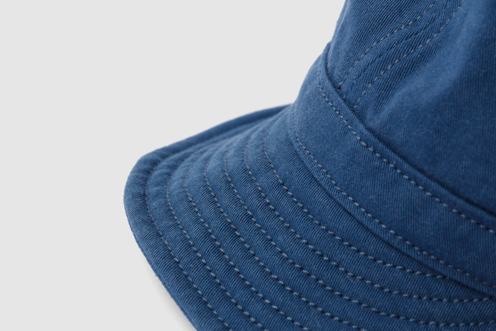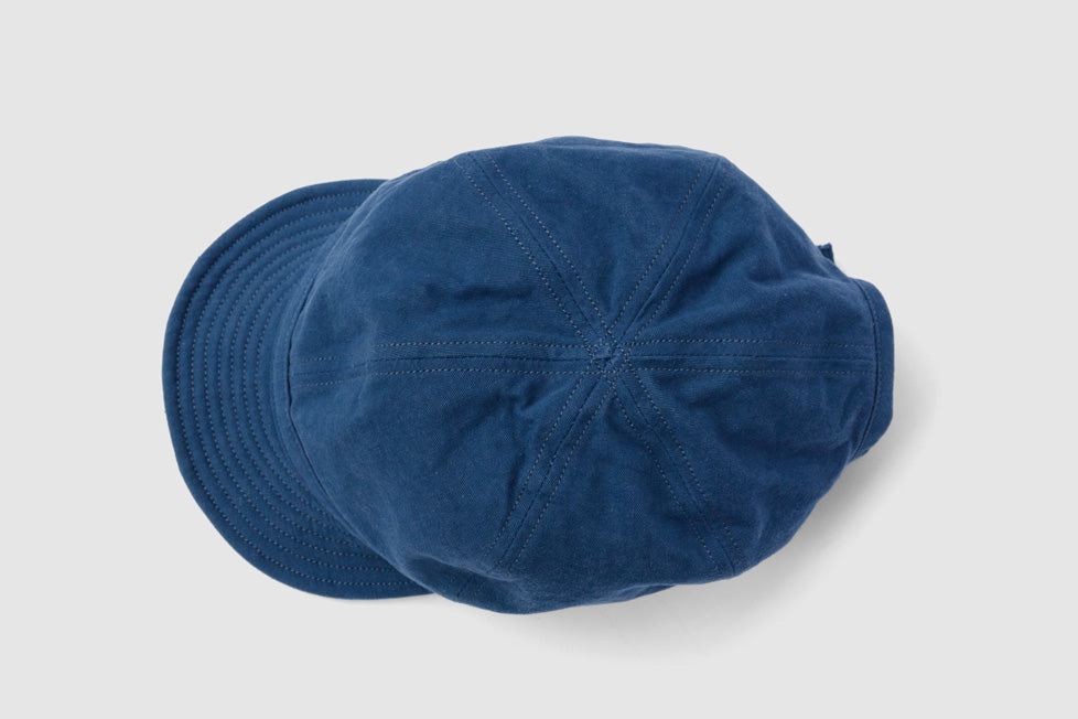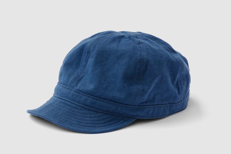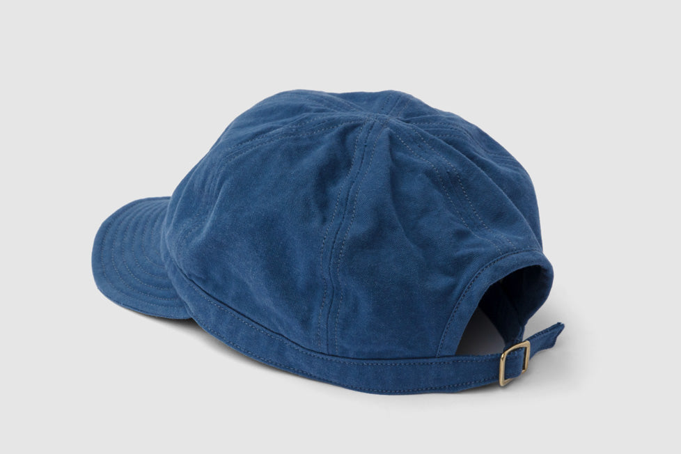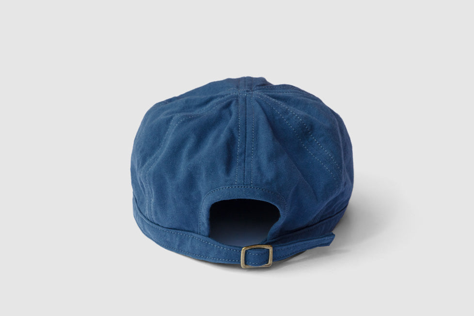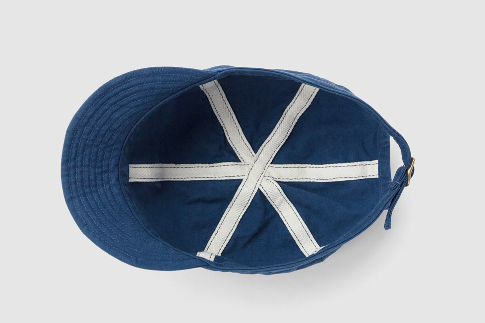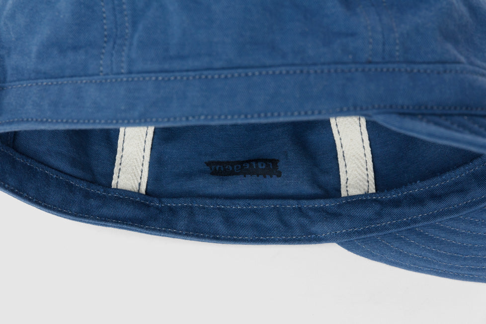 ワークキャップ「シーマイナー」。頭の保護のほか、汗止めやペン挿し、軍手代わりに掴んだり埃を払ったりするなど、現場作業で重宝するマルチツール。本体は6枚のパーツをコットンヘリンボンテープで縫い合わせていて裏地もないため通気性良好。ブリムには補強と適度な硬さを出すためのステッチを入れているので、視界を調整するためにクセづけすることも可能。本体後部には摩擦で留めるコキカンが付いているので無段階で長さを調整できる。製品洗い加工済み。しなやかでハリのある質感の「雲斎織(うんさいおり)」は足袋底などに使われる高密度の綿綾織物。